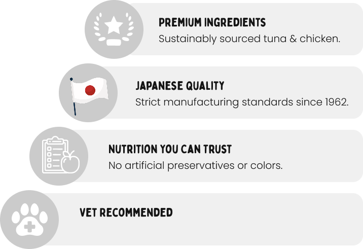 Aixia is Japan’s leading premium cat food manufacturer, trusted by millions of cat owners for many decades. Our mission is simple: to create delicious, nutritious meals that keep your cat healthy, happy, and thriving.
